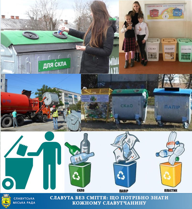 ✅ СОРТУЙМО СМІТТЯ. З 2015 року у Славуті запроваджено роздільний збір сміття і хоча є ще над чим працювати, важливо аби всі славутчани підтримували дану ініціативу. Сортуйте пластик (ПЕТ пляшки), скло, папір та залишайте в окремих контейнерах, встановлених на спеціально облаштованих майданчиках. Є пропозиції щодо роздільного збору сміття у громаді, дзвоніть диспетчеру КП «СЛАВУТА-СЕРВІС» за 📞 телефоном – 068-069-88-82.