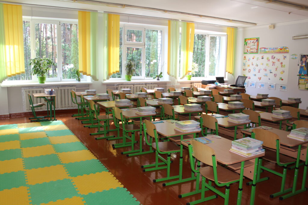 Переобладнано 4 приміщення, у яких навчалися учні початкових класів: одне приміщення – у спортивну залу, три приміщення – у групи для дітей дошкільного віку (проведено заміну двох дерев’яних дверних блоків на металопластикові, а також вирівнювання, шпаклювання і фарбування стін.