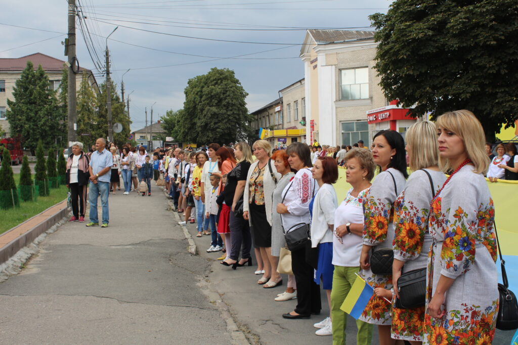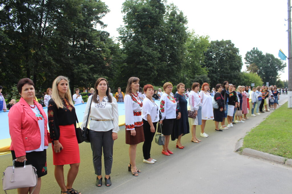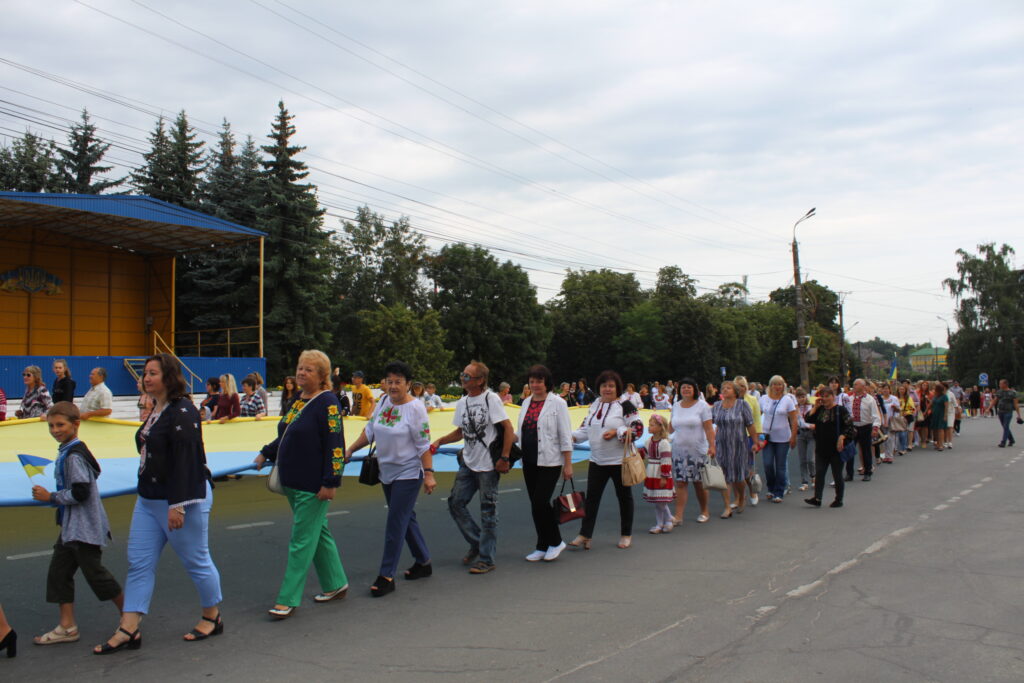Привітка: під час святкової ходи освітянами міста Славути було розгорнуто найбільшій у нашій громаді державний прапор України розміром 35*30 м.