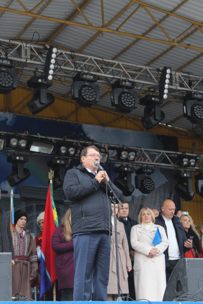 - Від імені депутатського корпусу дозвольте привітати вас із Днем міста, днем єднання минулого і сучасності, єднанням тих, хто народився на цій землі і хто на неї прибув, єднанням національностей, релігій та конфесій. Бажаю усім мирного неба, удачі та здоров’я.