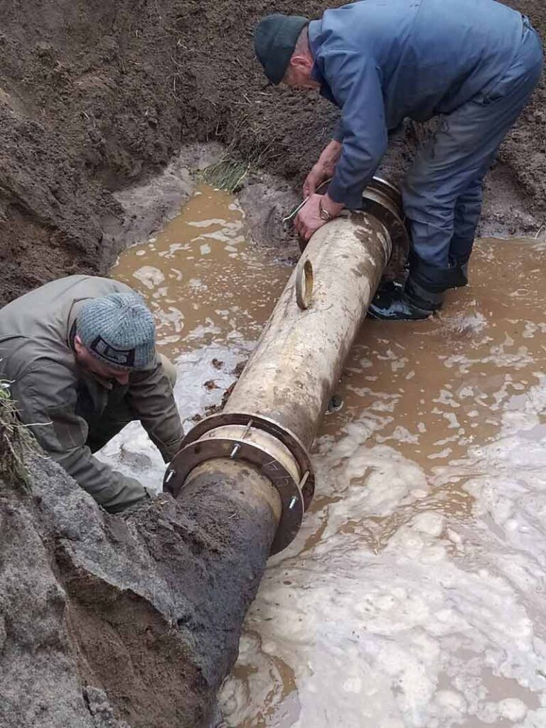 2. Потребували ремонту стальні труби водогону поблизу свердловини №10. Там у магістральній трубі діаметром 250 мм. виникли свищі. Зроблено вставку довжиною 1,5 метра, діаметром 250 мм.