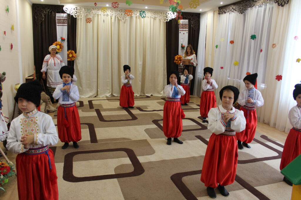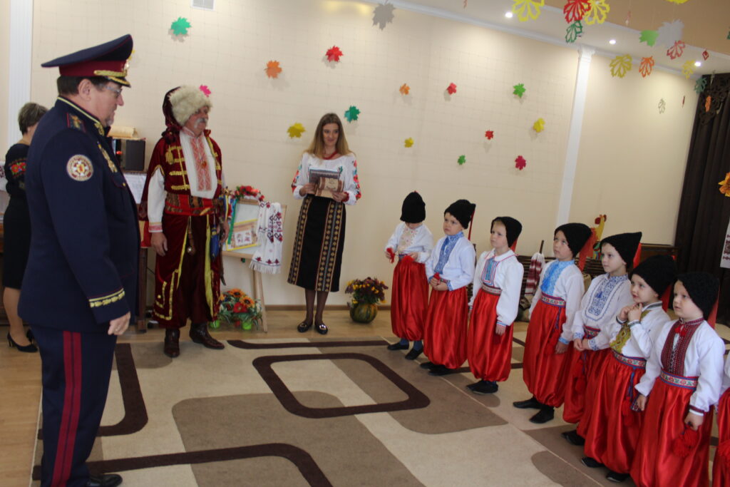 Програма була цікава та насичена творчими виступами: діти залюбки співали патріотичні пісні про славні подвиги козаків, виконували танки, зводили фортецю, відгадували загадки, взяли участь в естафеті «Напій коня», «Розвантаж човен», у руханці «Гопачок». Дівчатка підготували чудовий танок із рушниками та калиною.