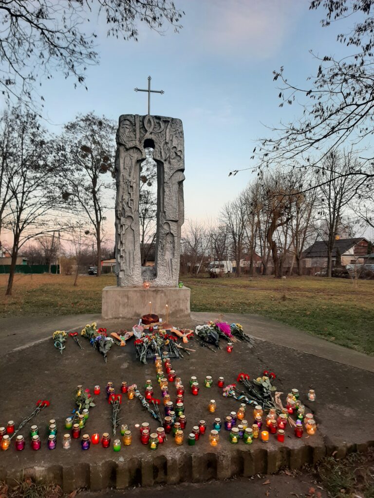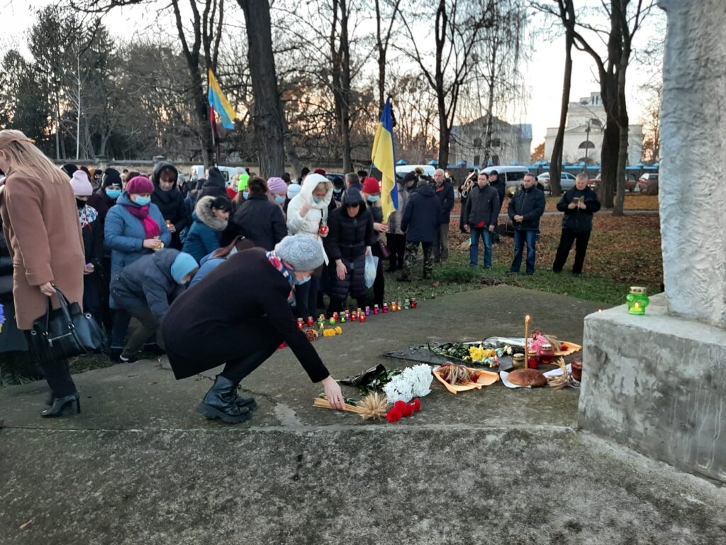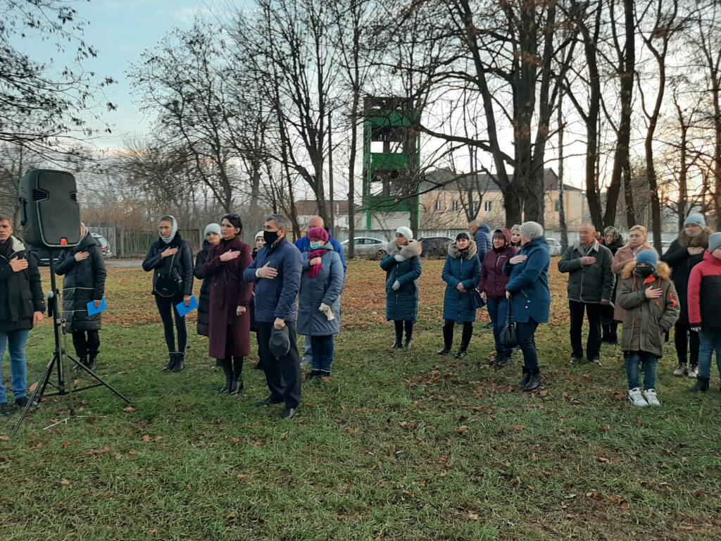Запаливши лампадки, учасники заходу вшанували памʼять жертв голодоморів хвилиною мовчання.