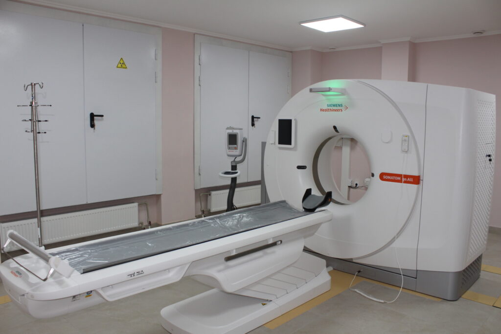 Далі ознайомилися із роботою приймального відділення Славутської міської лікарні, відреконструйованого в рамках Національної програми «Велике будівництво», ходом виконання капітального ремонту покрівлі корпусу №3 Славутської МЛ та встановлення ліфта-підйомника для транспортування хворих, переконалися у можливості безперебійного електроживлення у медичному закладі завдяки встановленому сучасному дизель-генератору. Крім того, оглянули облаштований майданчик для подальшого встановлення кисневої модульної станції на території Славутської МЛ.
