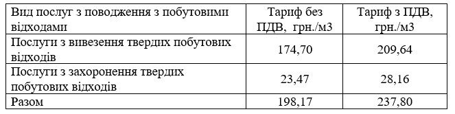 “Про встановлення тарифів на послуги з поводження з твердими побутовими відходами”