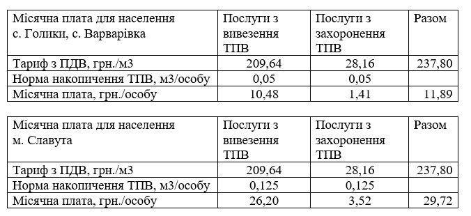1. Встановити Комунальному підприємству «СЛАВУТА-СЕРВІС» Славутської міської ради тариф на послуги з поводження з твердими побутовими відходами (структура тарифу додається):