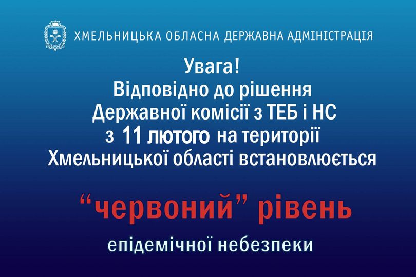 З 11 лютого 2022 року на території Хмельницької області встановлюється «червоний» рівень епідемічної небезпеки.