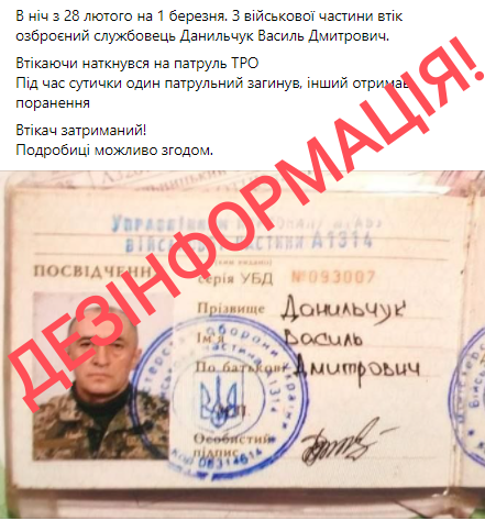 За наявною офіційною інформацією події, викладені в публікації групи однієї із груп соціальної мережі, щодо дезертирства українського військовослужбовця ‼️НЕ ВІДПОВІДАЮТЬ ДІЙСНОСТІ ‼️