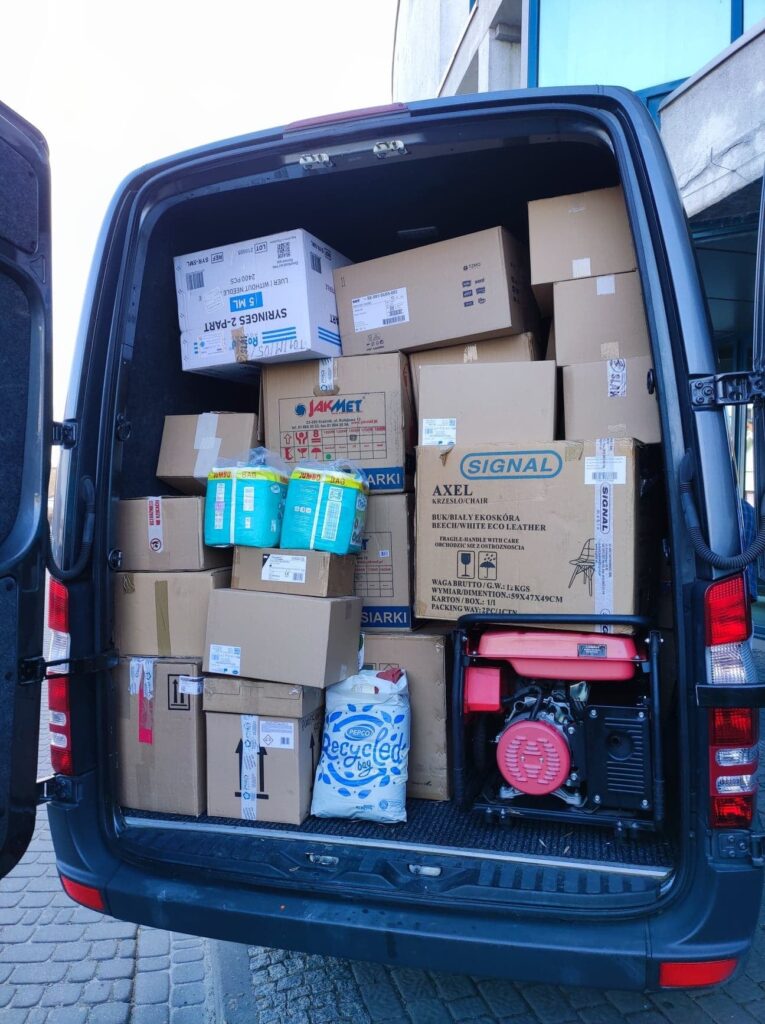 Штаб спільно з волонтерами здійснює формування, відправлення та координацію гуманітарної допомоги до тих регіонів України, де зараз йдуть активні бойові дії. Такі вантажі уже були направлені до жителів Київщини (населені пункти Гостомель, Ірпінь, Буча, Біла Церква) задля забезпечення їх продуктами харчування, ліками, дитячим одягом та іншими речами першої необхідності, які зібрані нашою тергромадою та надані Республікою Польща.