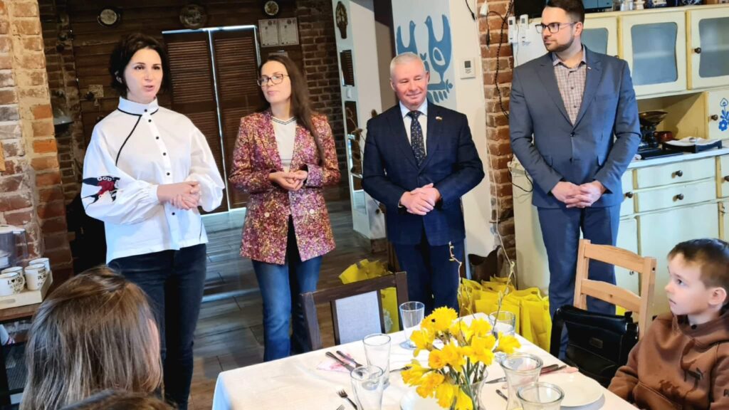 Окрема увага приділяється психологічній підтримці українських сімей, тому наші польські друзі не лише сердечно приймають наших земляків, а й влаштовують для них різноманітні заходи підтримки — майстеркласи, творчі виступи, креативну АРТ-терапію. Під час перебування у Красніку представниця зі Славути побувала на одному із таких заходів, влаштованих для українських сімей, яким допоміг Красницький повіт.