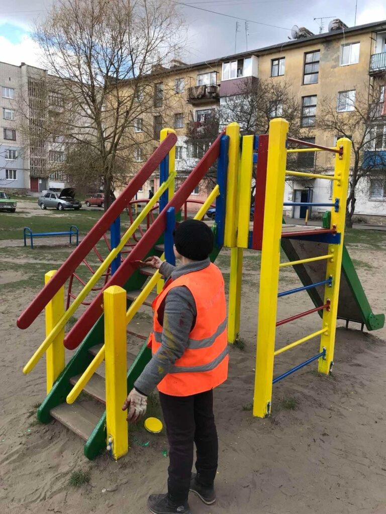 - виконується фарбування та ремонт прибудинкових лавок, сходів, бордюр тощо;