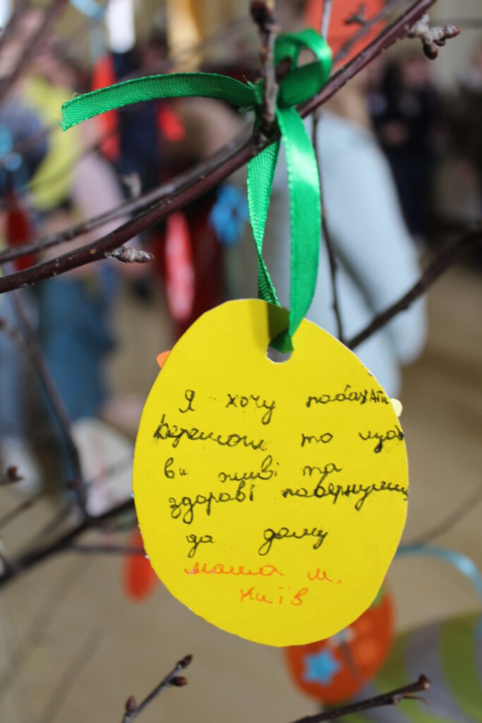 На майстер-класах діти виготовили патріотичних янголів та сонечко, плели обереги з бісеру «Прапор України», долучилися до акції «Великоднє переможне дерево» – робили писанки з щирими побажаннями захисникам України, які залишили на дереві, загадавши найзаповітніші бажання.