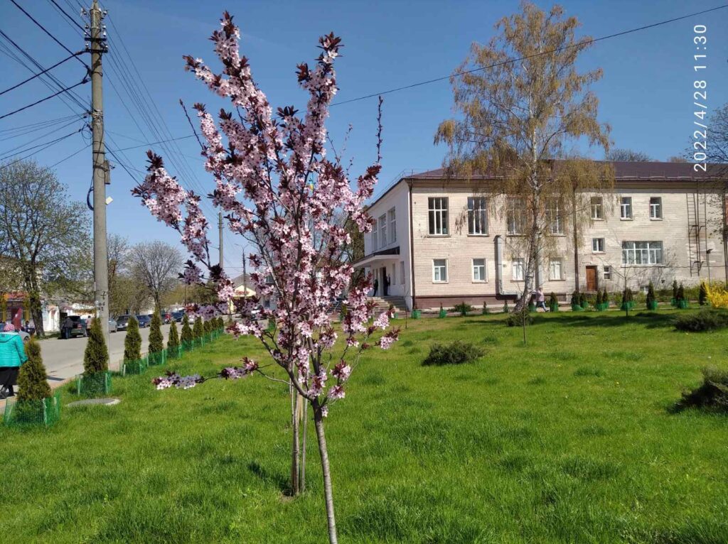 А зовсім поруч радують славутчан та гостей міста своєю неймовірною красою квітучі сакури, висаджені у сквері Т.Г. Шевченка кілька років тому.