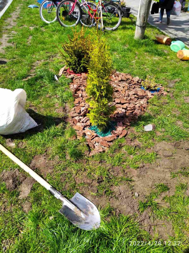 Саме зараз працівники підприємства висаджують декоративні кущі (туї, бересклет, ялівець) та оздоблюють місця насаджень вздовж вул. Козацької.