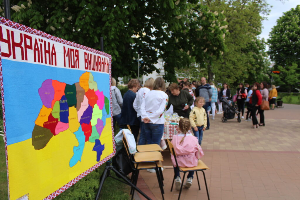 Крім того, усі бажаючі мали можливість сфотографуватися на фоні вишитої мапи України, автором якої є колектив ДНЗ № 6 «Золота Рибка» – 352 313 стібків!