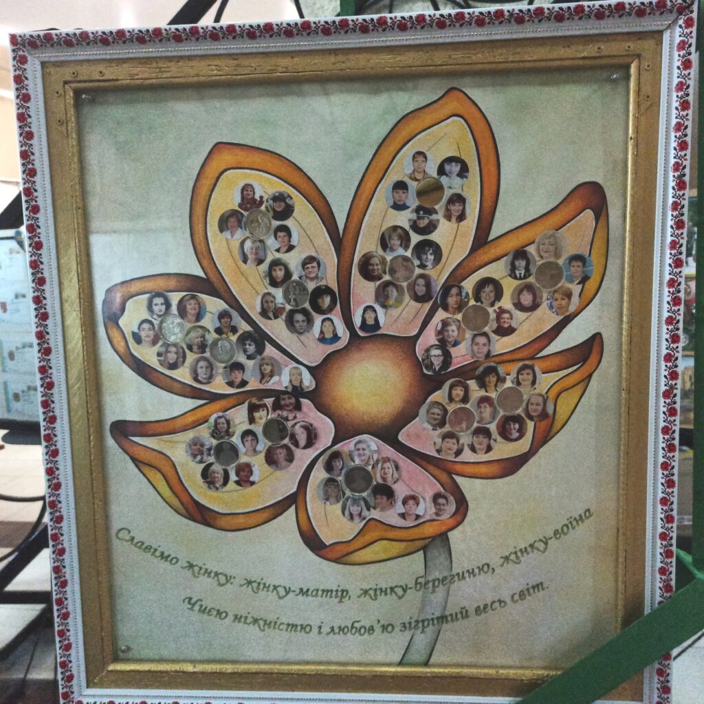 Особливу увагу привернула картина, інкрустована ювілейними монетами із зображенням відомих жінок України «Квіти України» авторства Лаури Будагян. Голова Клубу колекціонерів Петро Смірнов презентуючи дану картину зазначив: