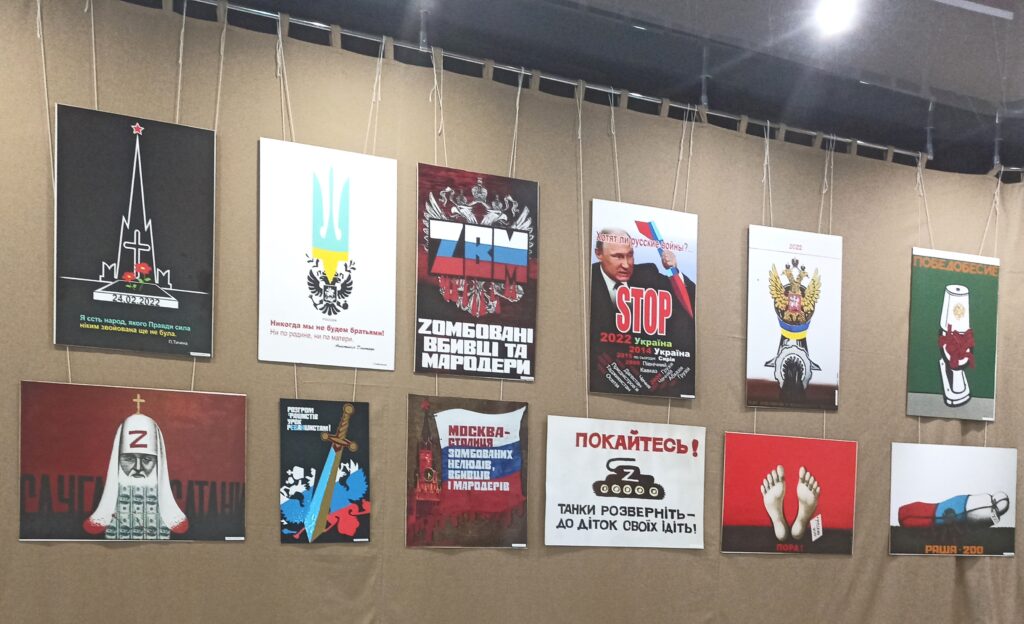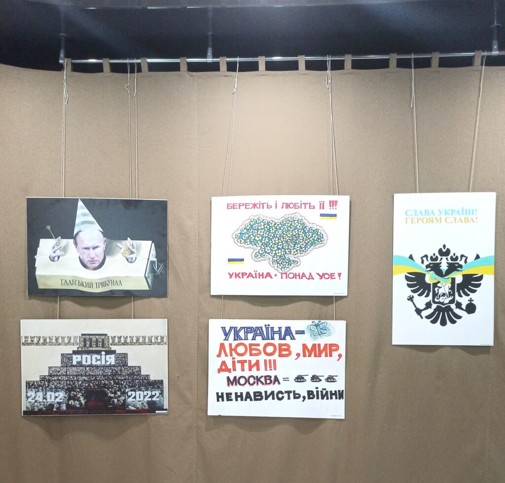 На виставці було представлено 29 робіт відомих митців нашого краю – Якова Павловича, Володимира Карвасарного, Олега Бобровського та Миколи Мельничука, які об’єдналися та відобразили своє бачення агресивних дій ₚосії.