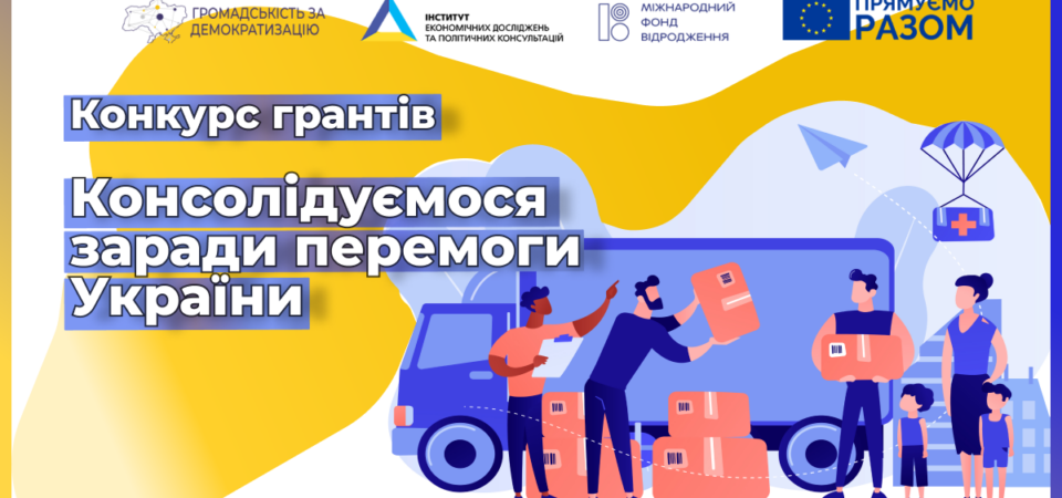 Інститут економічних досліджень та політичних консультацій в межах програми «Громадськість за демократизацію», яка фінансується Європейським Союзом, оголошує конкурс грантів «Консолідуємося заради перемоги України».
