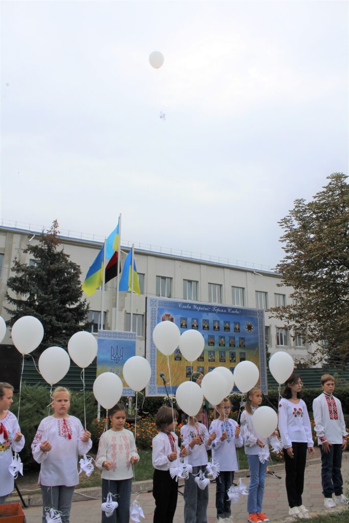 Біля стели пам’яті Героїв АТО/ООС Славутчини, де відбувся памʼятний захід, присутні поіменно згадали усіх загиблих героїв. Символізуючи душі захисників України, у небо відлетіли 25 паперових янголів…
