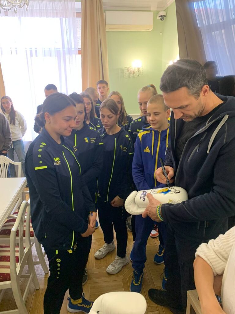 Поспілкувалися та подякували спортсменам, які відмовилися виступати під «нейтральним» прапором на юніорському чемпіонаті Європи-2022 цієї осені. Тоді Міжнародна асоціація аматорського боксу (IBA) заборонила українським боксерам виступати під державним прапором.