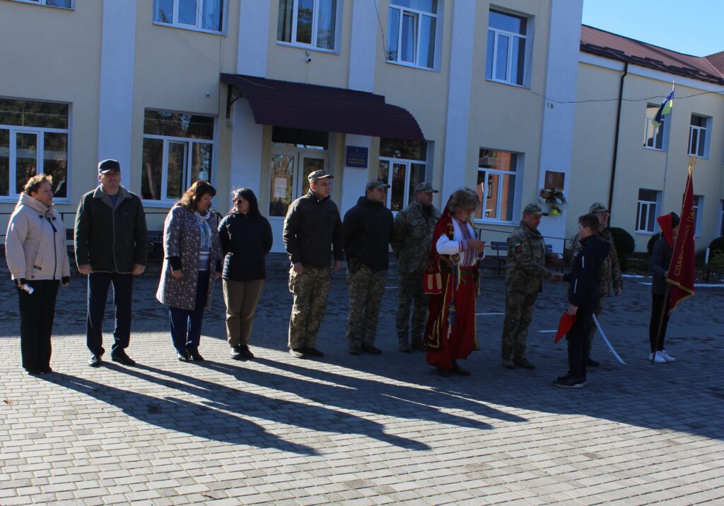 Після відповідного заклику осавула Романа Бачинського, шкільні рої доповідали про готовність до проведення урочистої церемонії посвяти отаману Хмельницького округу МГО «Козацтво Запорозьке», міському голові Василю Сидору.