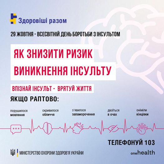 29 жовтня відзначається Всесвітній день боротьби з інсультом. На жаль, інсульти стали не просто часто зустрічатися у повсякденні, щороку понад 100 тисяч українців, третина з яких – молодше 65 років, стають жертвами інсульту. За інформацією Департаменту охорони здоров’я ОВА, тільки протягом 9 місяців 2022 року зареєстровано 2887 випадків інсульту.