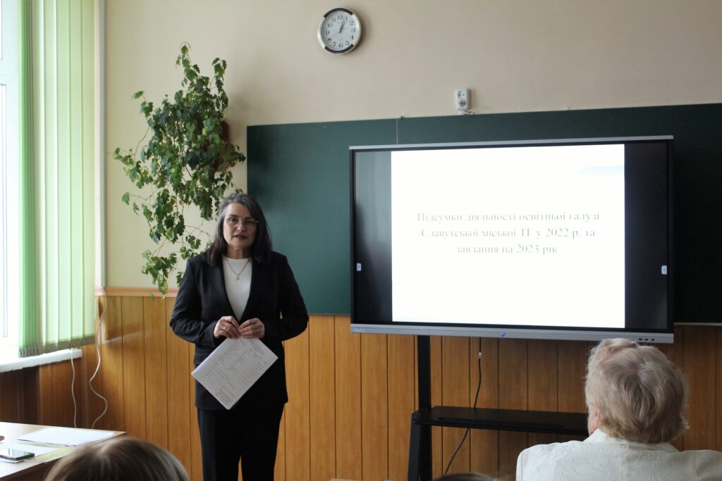 ➡️Начальник управління освіти виконавчого комітету Славутської міської ради Ельміра Перепелиця доповідаючи про те, як функціонувала освітня сфера впродовж 2022 року, зазначила: