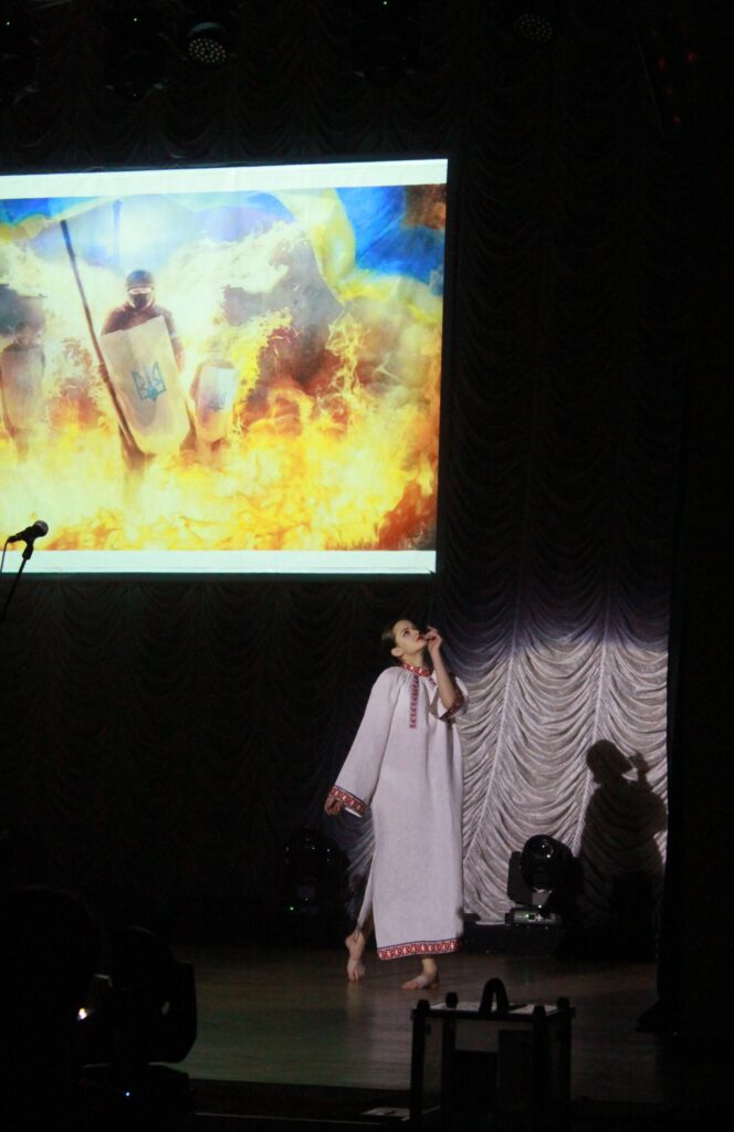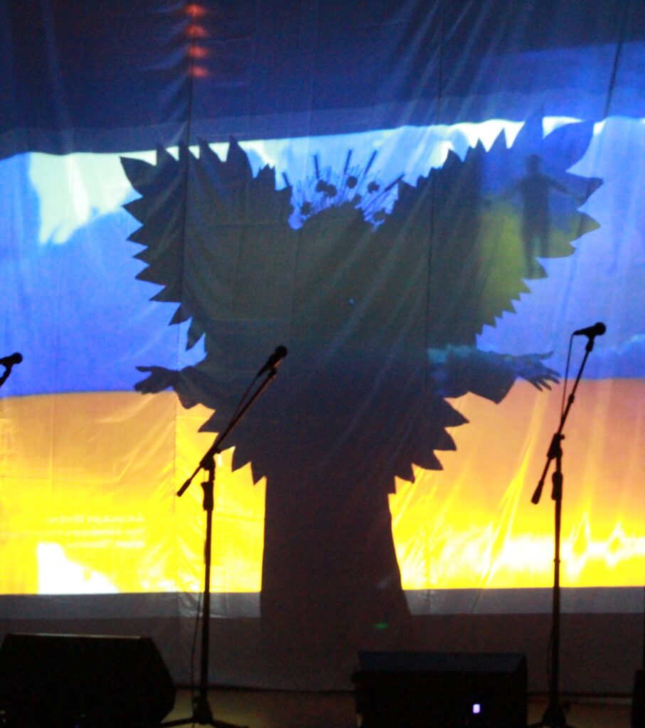 Розпочався захід символічною появою України-матері, яка наразі переживає важкі часи війни та втрат, але як птах-Фенікс відроджується з попелу, уособлює незламність українського народу, силу духу та непереможність.