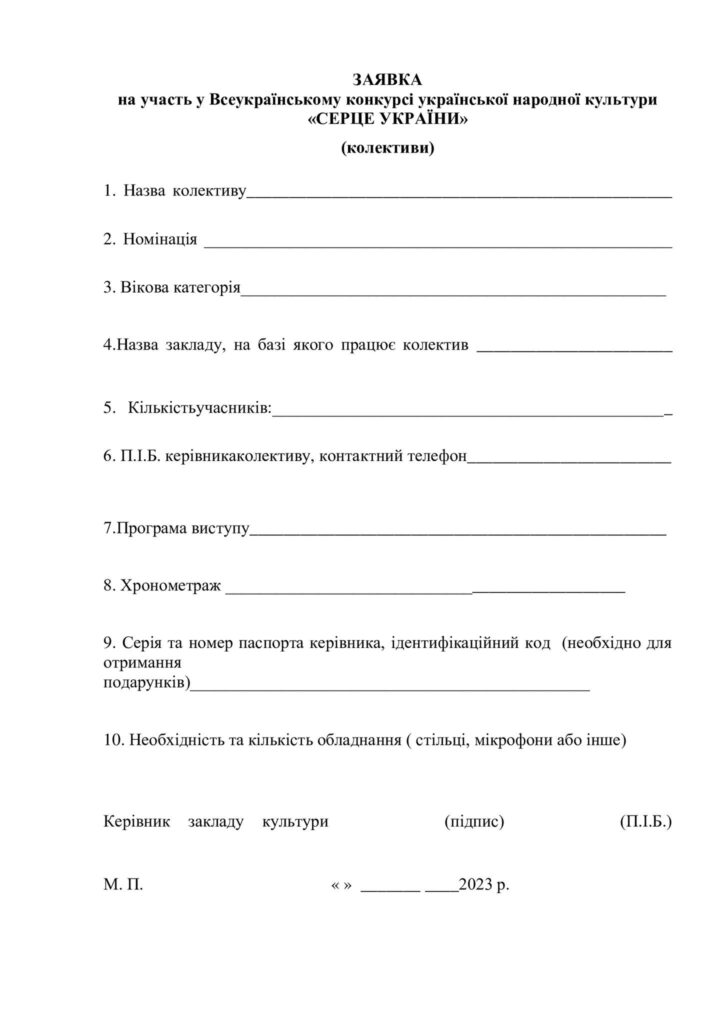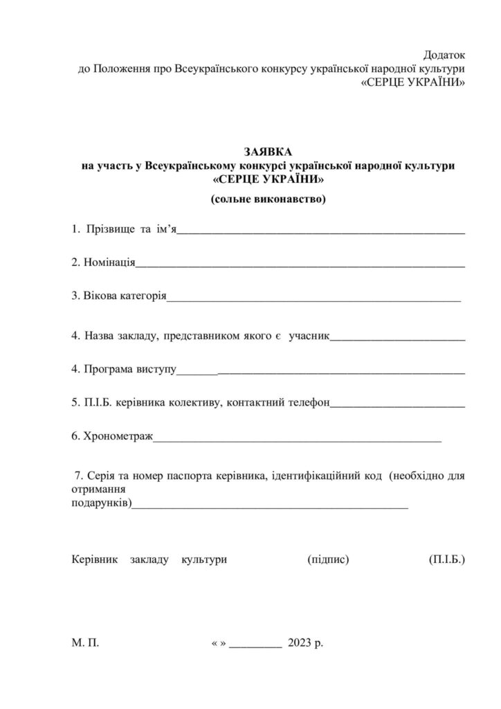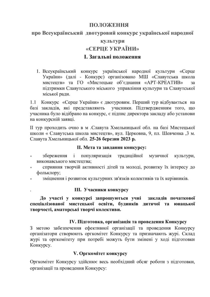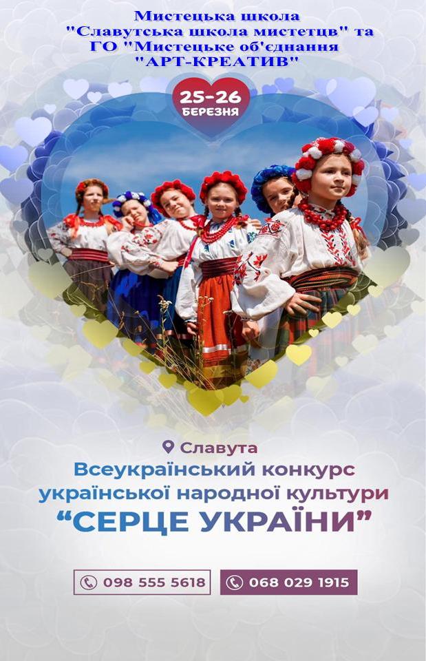 ДОЛУЧАЙТЕСЯ ДО ВСЕУКРАЇНСЬКОГО КОНКУРСУ УКРАЇНСЬКОЇ НАРОДНОЇ КУЛЬТУРИ «СЕРЦЕ УКРАЇНИ». ПОДАЧА ЗАЯВОК ДО 15 БЕРЕЗНЯ💛💙 Дата 28.02.202328.02.2023 Створив info-mvk За інформацією Мистецької школи “Славутська школа мистецтв”