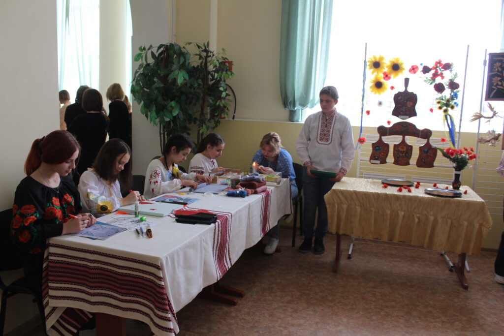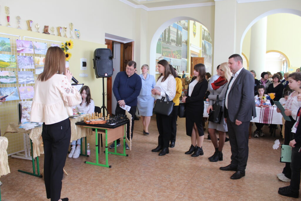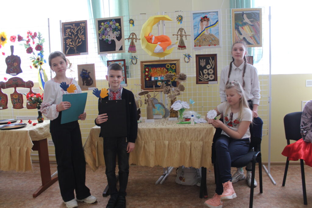 Зустрічали гостей виставкою виробів декоративно-прикладного мистецтва «Барви нескореної України» за участю умільців закладів загальної середньої та позашкільної освіти. У цьому році на виставці представлено 167 робіт у 28 техніках, 22 з яких є обов’язковими відповідно до положення про цей конкурс. Решта – творчість та креативний пошук наших педагогів і дітей.