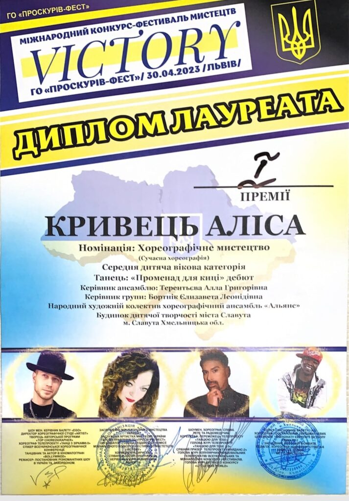 У Міжнародному конкурсі-фестивалі мистецтв «VICTORY» брали участь колективи з різних міст України, в різних стилях хореографічного мистецтва. Було цікаво і повчально як для дітей, так і для викладачів.
