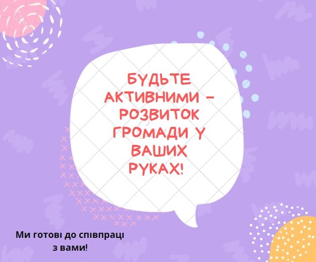 Давайте разом змінювати своє життя і життя нашої громади на краще! Давайте разом наповнюватися упевненістю в завтрашньому дні завдяки власним зусиллям, праці і розвитку! Ми готові до співпраці з вами!
