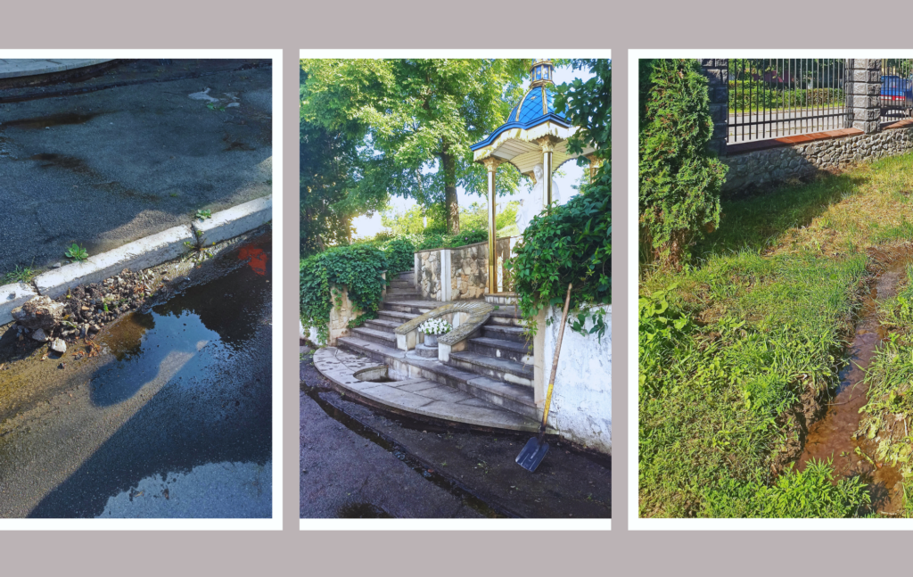 Працівники КП «Славута-Сервіс» здійснюють заходи щодо усунення витоку джерел та грунтових вод, яке призвело до підтоплення узбіччя дороги та тротуару.