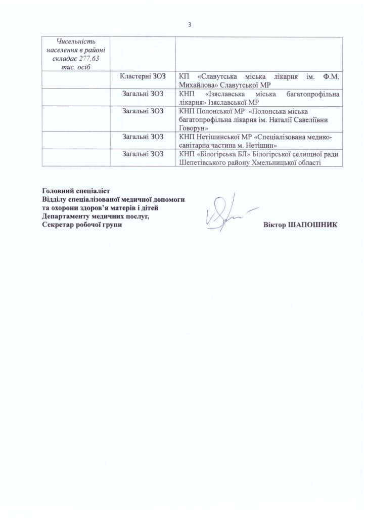 Приємно відзначити, що Славутську міську лікарню визнано кластерним закладом охорони здоров’я. Такий статус надано лише двом лікарням Шепетівського району.