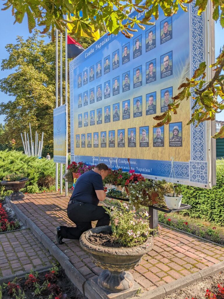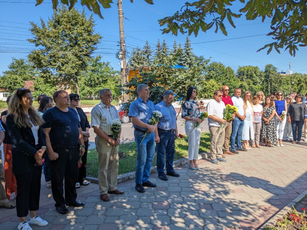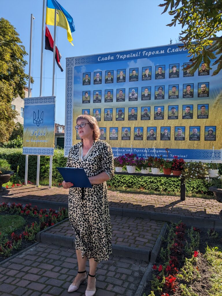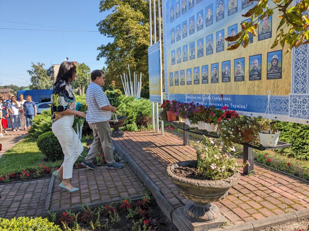 На честь загиблих учасників російсько-української війни, Революції гідності, видатних діячів українського державотворення присутні поклали квіти до стели пам’яті Героїв Славутчини, пам’ятного знаку Героям Небесної Сотні та дошки пам’яті Герою України Левку Лук’яненку.