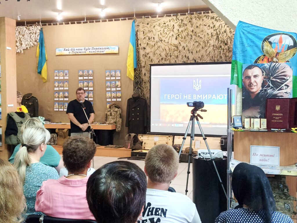 Далі ведуча заходу директорка музею Світлана Матвійчук разом із рідними, близькими, знайомим, побратимами розпочала знайомство присутніх із життям Героя, від дитинства до останнього його подиху.
