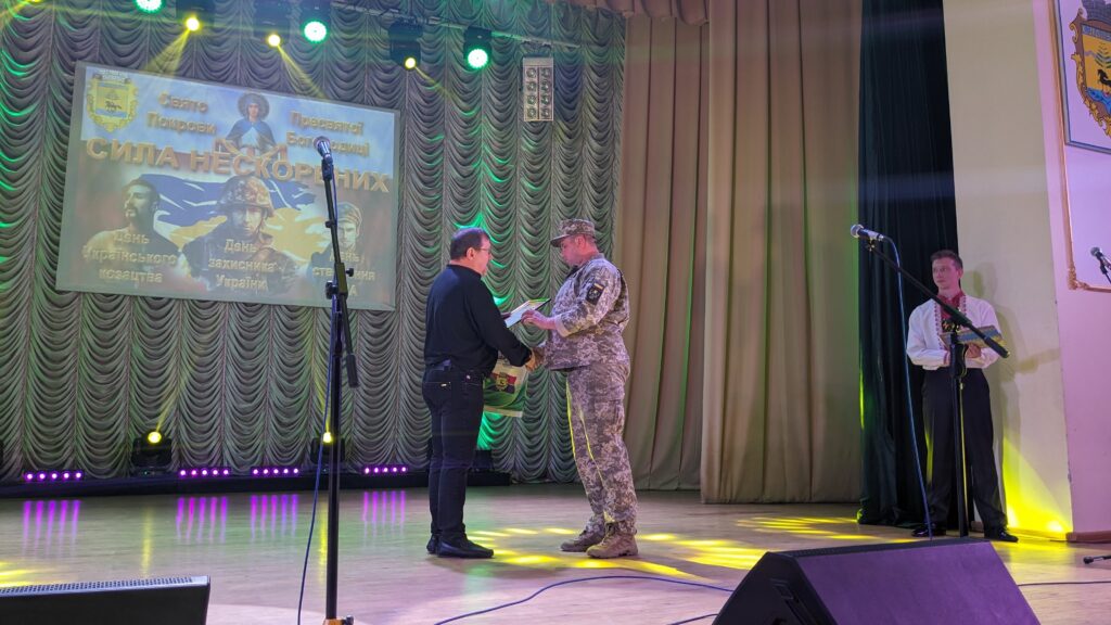 💬 «Сьогоднішній захід – це ще одна можливість вшанувати воїнів усіх поколінь, які боронили нашу землю та відзначити величні свята українського народу. Сьогодні козацькі традиції бережуть і розвивають сучасні захисники і захисниці України, а Свята Покрова тепер стала захисницею і сучасного українського війська. Декілька десятків років ми не усвідомлювали, що можуть бути на світі люди, які будуть так відноситися до української нації. У 2014 році ми зрозуміли, що є ті, які не живуть своїм життям, а хочуть жити за рахунок когось. Ці випробування, які ми з вами сьогодні проходимо, жорстокі, але ми повинні їх пройти достойно. З перших днів ми максимально допомагаємо ЗСУ. Так, на останній сесії було вирішено виділити 1 млн грн тим військовим частинам, які до нас звернулися. Щира вдячність всім, хто працює на усім, хто працює на перемогу».