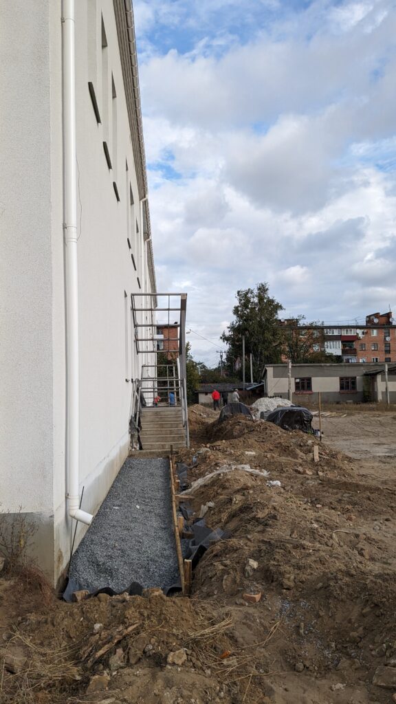 Наразі виконуються роботи із благоустрою території освітнього закладу та внутрішні оздоблювальні роботи.