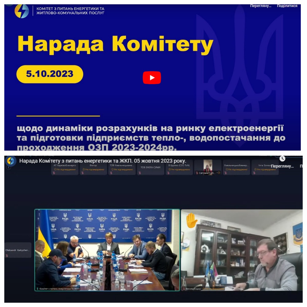Розгляд питання щодо підготовки підприємств тепло-, водопостачання та органів місцевого самоврядування до сталого проходження ОЗП 2023-2024 рр. та ін.