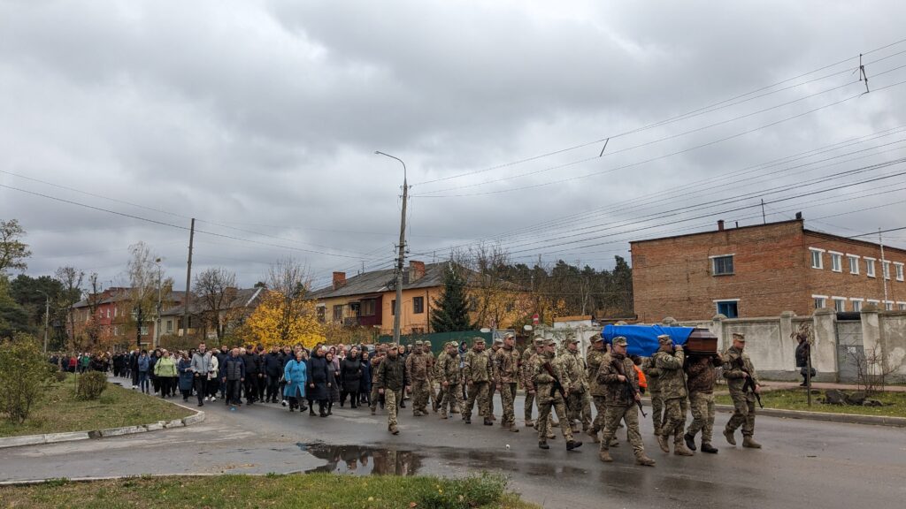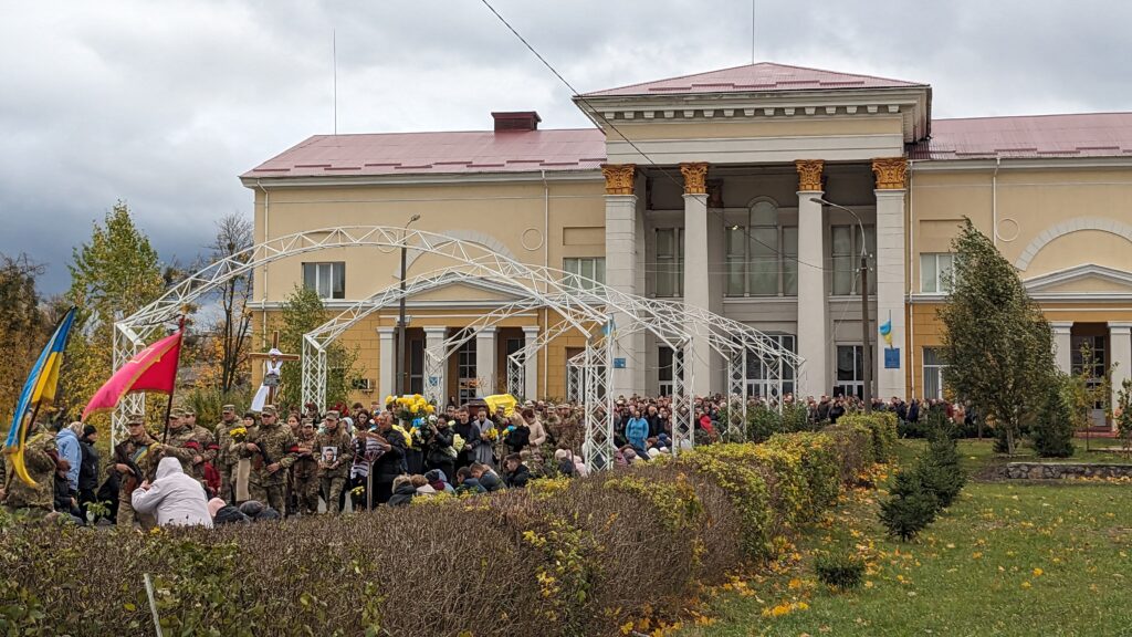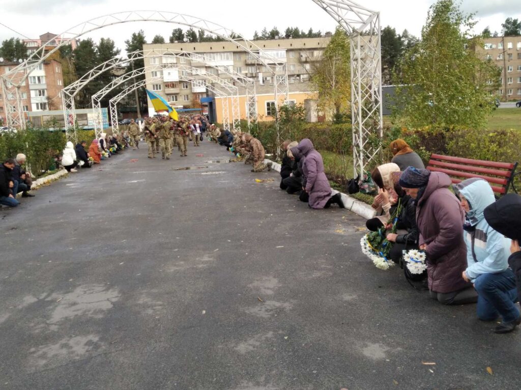 Церемонія громадського прощання відбулася в міському Палаці культури. Підтримати родину і провести в останній шлях загиблого прийшло багато людей.