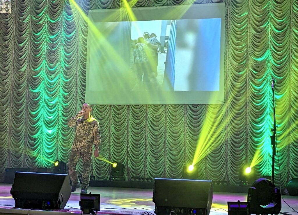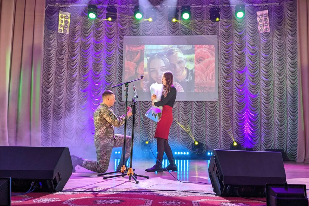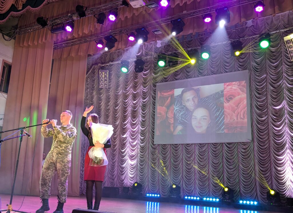 Концертна програма творчого вечора була досить насиченою та включала: ярмарок зі збору коштів на потреби ЗСУ, організований волонтерським центром «Бойові бджоли», благодійний аукціон, виступи творчих колективів міського Палацу культури, народного аматорського хореографічного ансамблю «Пролісок», військовослужбовців Романа Гученка, Максима Величка та навіть романтичну пропозицію руки та серця, а отже – зародження нової української сім’ї.