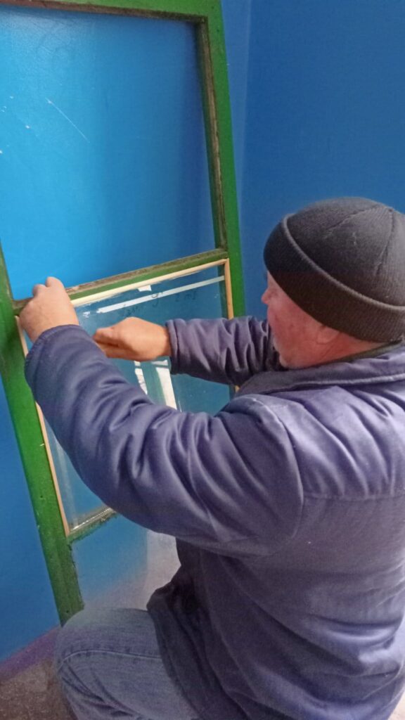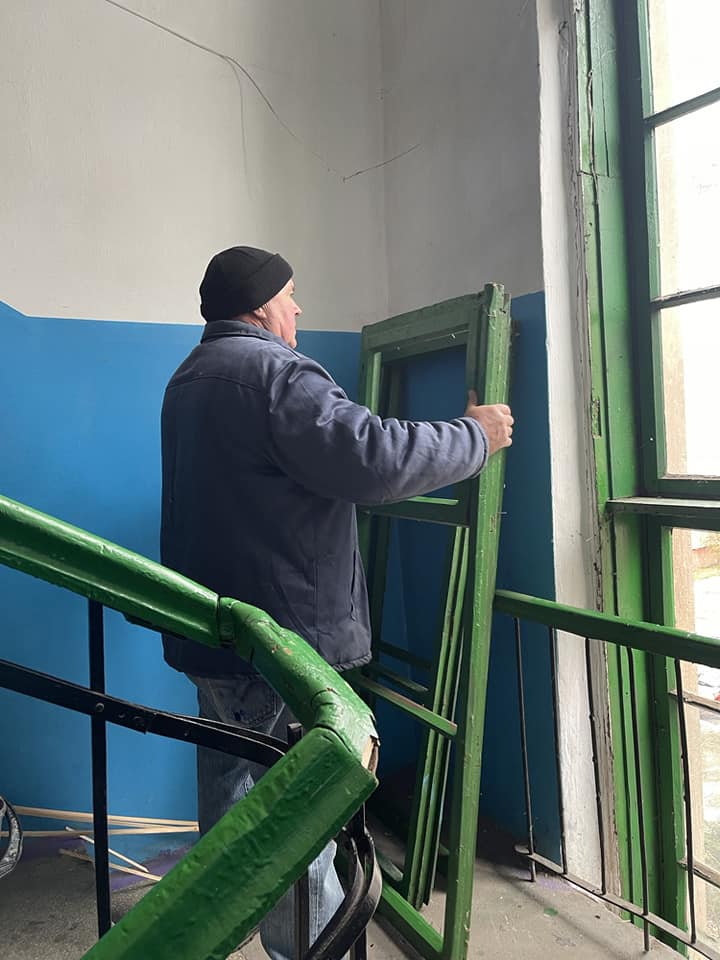 Працівники підприємства завершують скління вікон місць загально користування багатоповерхівок, що були пошкоджені внаслідок удару рф.