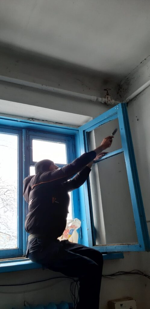 ☑️Тривають роботи із усунення пошкоджень вікон у під’їздах будинків по вулиці Зарічна та Героїв Небесної Сотні.
