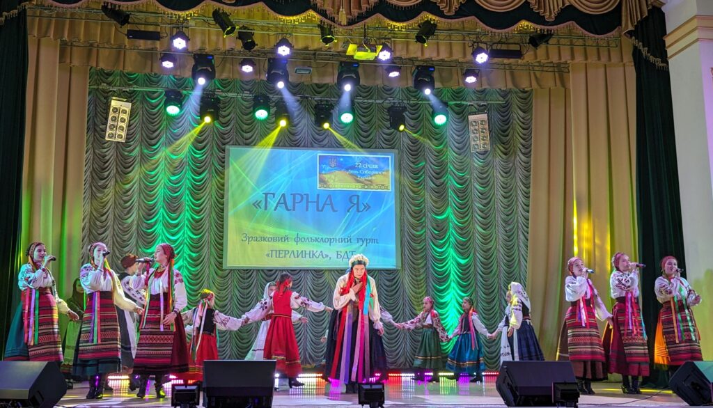 На честь Дня Соборності України на присутніх чекала насичена концертна програма за участю творчих колективів та солістів міського Палацу культури, Славутської мистецької школи та Будинку дитячої творчості. Усі разом вони впевнено тримають культурний фронт у нашій громаді. А місцеві волонтери організували благодійний ярмарок.