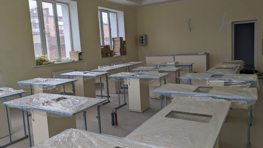 Реконструкція об’єкта будівництва розділена на дві черги будівництва, перша з яких – навчальний корпус, а друга – спортивні майданчики. На даний час будівництво другої черги не розглядається. Варто зазначити, що розробка проєкту із реконструкції була розпочата ще у 2015 році, будівельні роботи стартували у 2016 році. Проте, із початком війни, відповідно до вимог чинного законодавства, реконструкція освітнього закладу була призупинена.