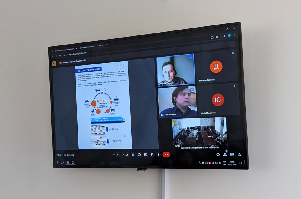 Днями, у приміщенні міської ради, відбулася робоча онлайн-зустріч керівництва громади, приватних перевізників, які здійснюють міські перевезення на території Славутської громади із розробниками автоматизованої системи оплати проїзду в міському транспорті ТзОВ «Українські геоінформаційні системи».