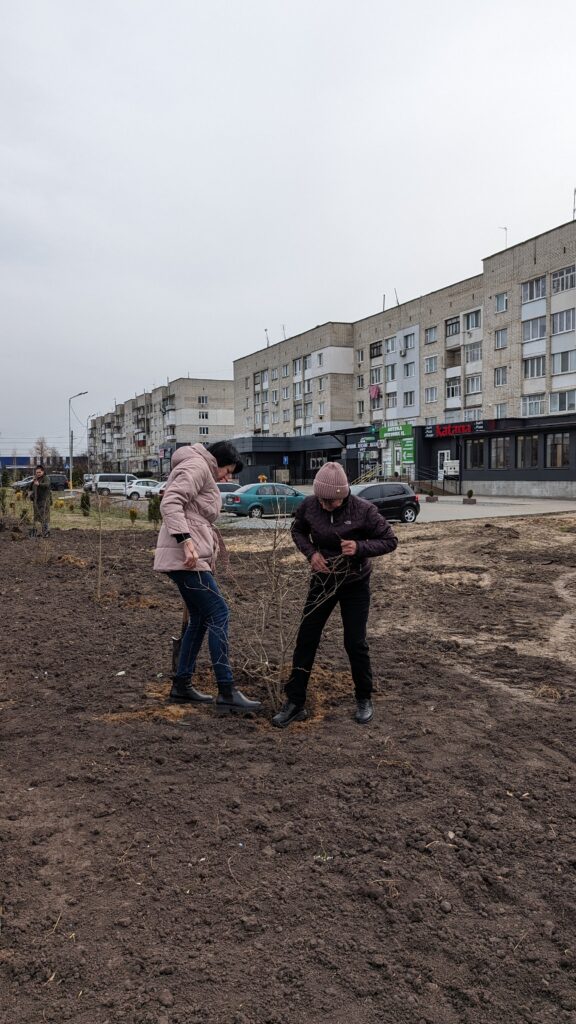Сьогодні, на Алеї пам’яті «Наші Герої» працівники КП «Славута-Сервіс» разом із родичами загиблих воїнів висадили кущі калини.