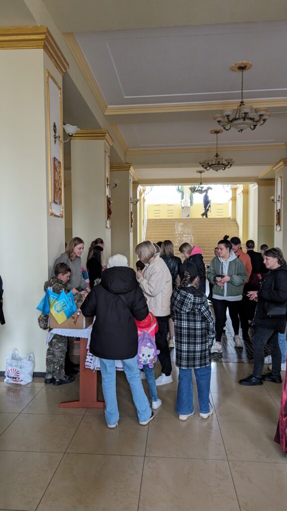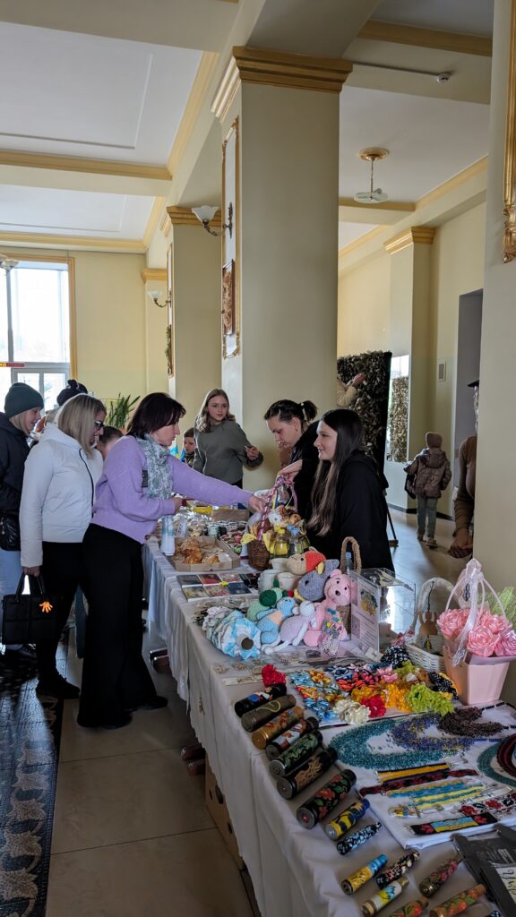 У холі гостей заходу зустрічали місцеві волонтери, які організували ярмарок-розпродаж смаколиків, виробів ручної роботи та багато іншого.