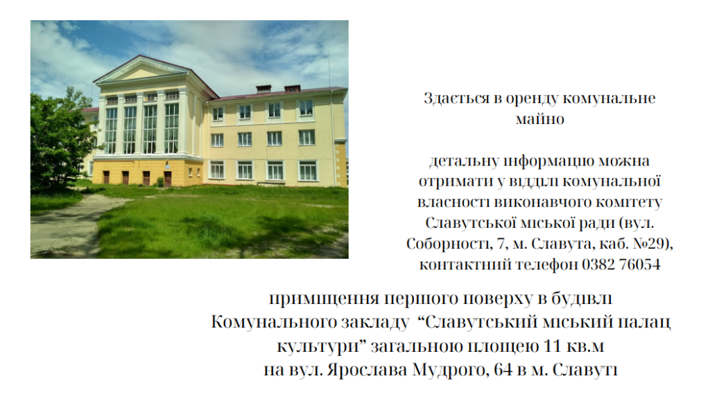 ЗДАЄТЬСЯ В ОРЕНДУ комунальне майно!