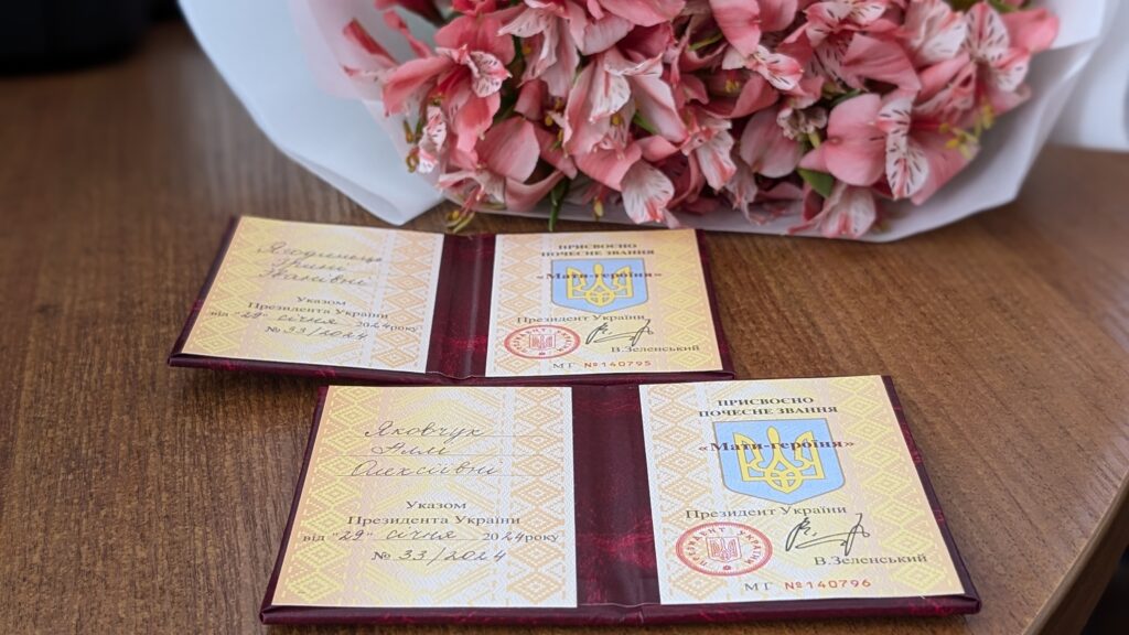 Василь Богданович та Богдан Петрович особисто вручили посвідчення, нагрудні знаки Ірині Ягодинець та Аллі Яковчук, які змогли бути присутніми на заході, висловили берегиням слова поваги та вдячності за безцінний внесок у виховання дітей, а також побажали їх сім’ям сімейного щастя та міцного здоров’я.
